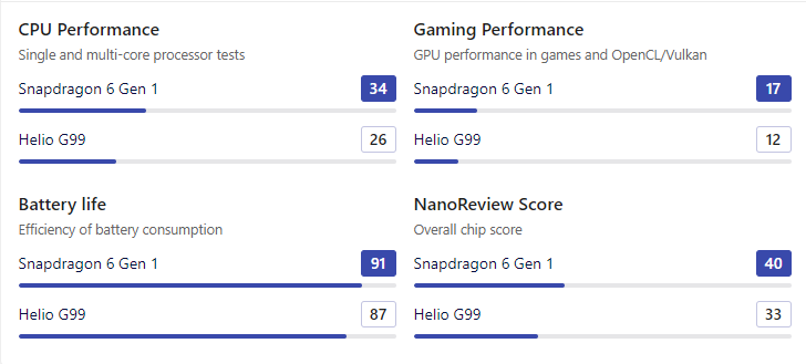 - 프로세서 : Helio G99 > 스냅드래곤 6 Gen 1