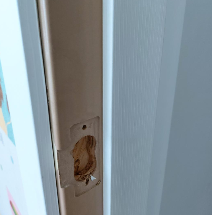 안방, 아이들 방, 화장실, 안방 문, 중문 등 많은 문 중에서 이 방 문 틀이 상태가 가장 좋지 않았습니다.