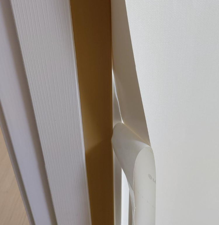 이미 1차 적으로 덧붙여진 상태라서 문과 문틀 사이에 틈이 없어서 3중으로 붙이게 되면 문과 문틀이 닿게 닫히지 않을 것 같아서 이부분은 꼭 제거하기로 했습니다.