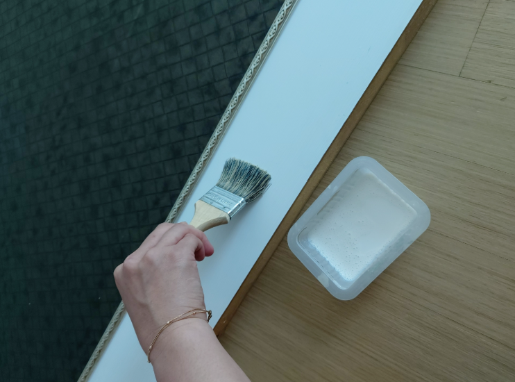 방 문에 시트지를 바르기 30분 전에 미리 프라이머를 발라 줍니다.