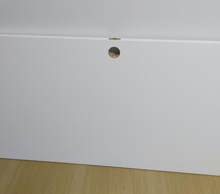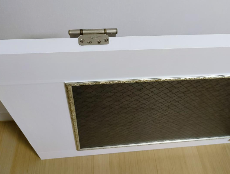 시트지를 잘 붙여주고 걸쇠 부분을 나사로 고정해 주면 깔끔합니다. 기존 시트지에 나무 무늬가 살짝 드러나 보이네요. 모두 제거하고 하는 게 좋을 뻔 했습니다.