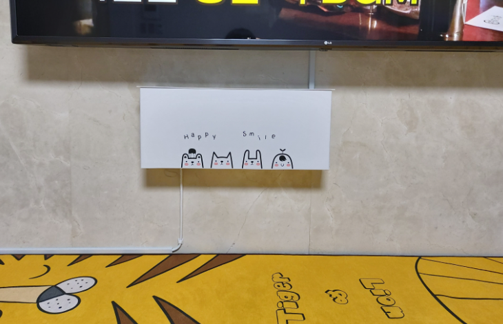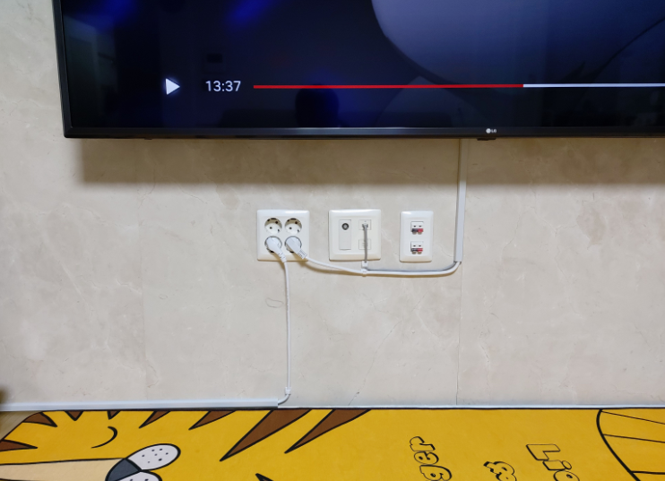 TV를 벽걸이 타입으로 바꾸고 거실장을 치워버렸더니 TV보다 낮은 위치에 노출된 콘센트와 단자들이 보기 안 좋습니다.