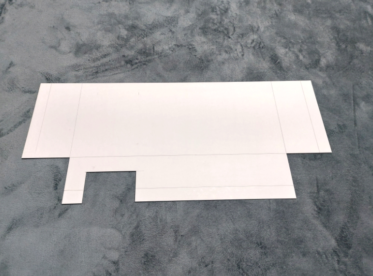 대략적인 전개도만 생각해본 거라 이런 모양입니다. 하드보드지에 그릴 때는 실제 사이즈를 측정해서 그려야 합니다.