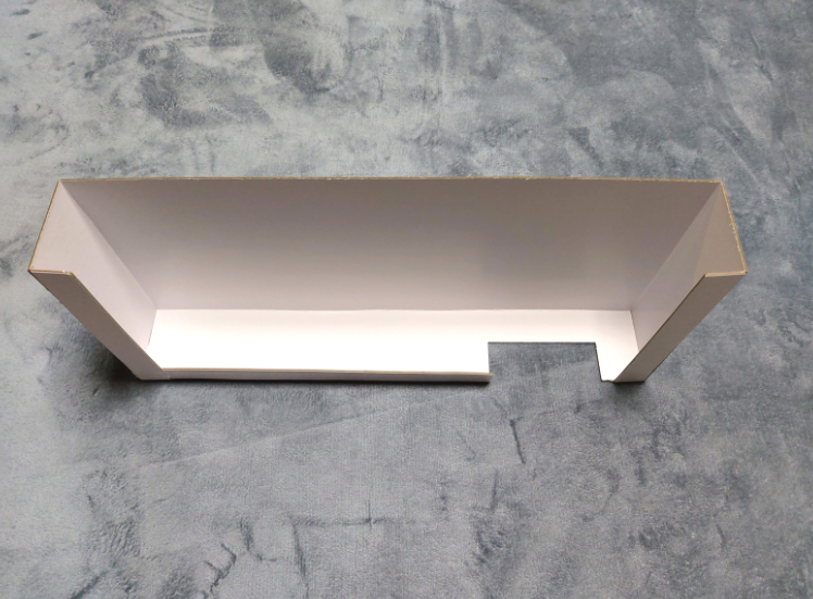 접는 선을 따라 칼로 살짝 흠을 내서 접고 종이 테이프로 이음새를 붙여서 모양을 잡아줬습니다. 이대로라면 단면도 지저분하고 결합 부위도 종이테이프라서 힘이 없겠죠.