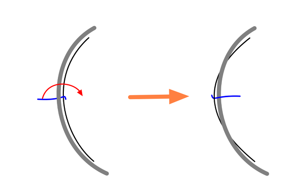그림을 설명 하자면 파란색 선은 타이어 주걱, 검은색 선은 타이어의 와이어, 회색선은 자전거 바퀴의 림을 의미합니다.