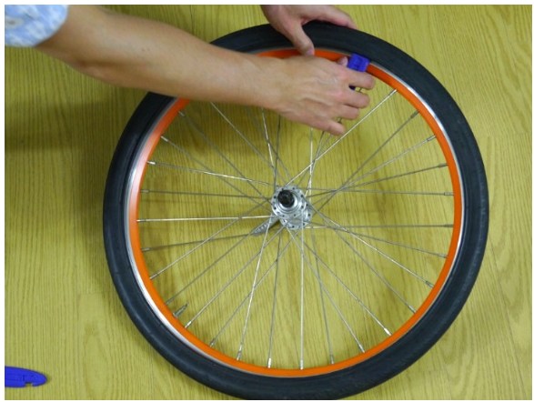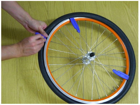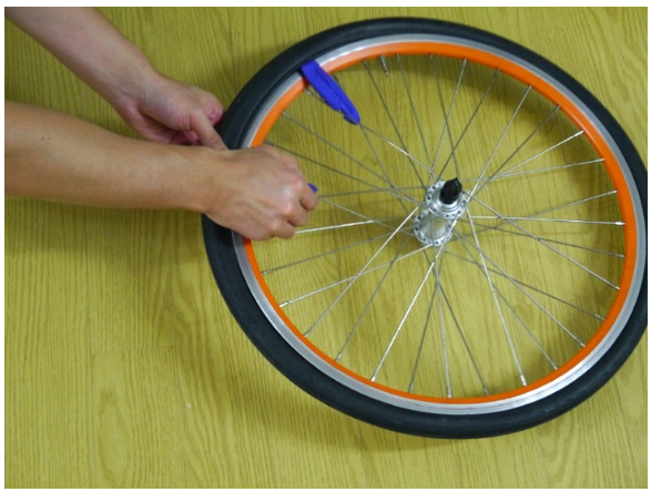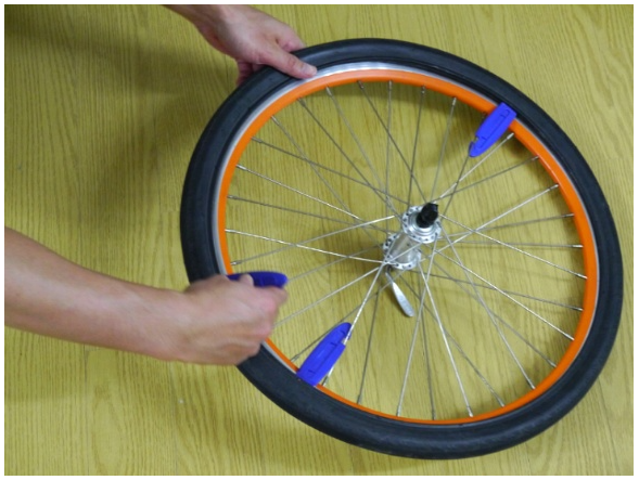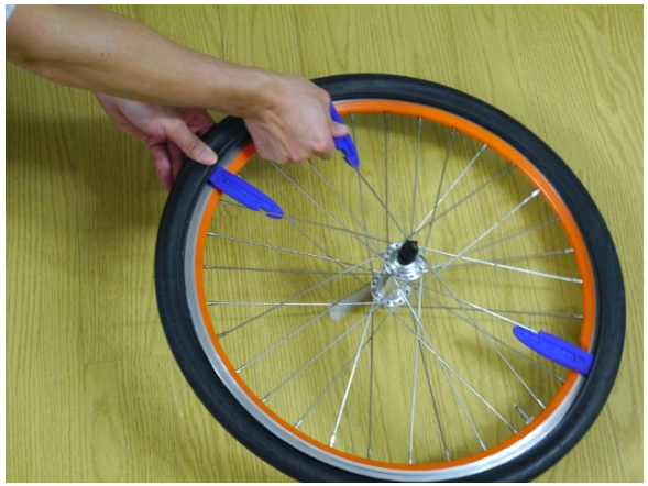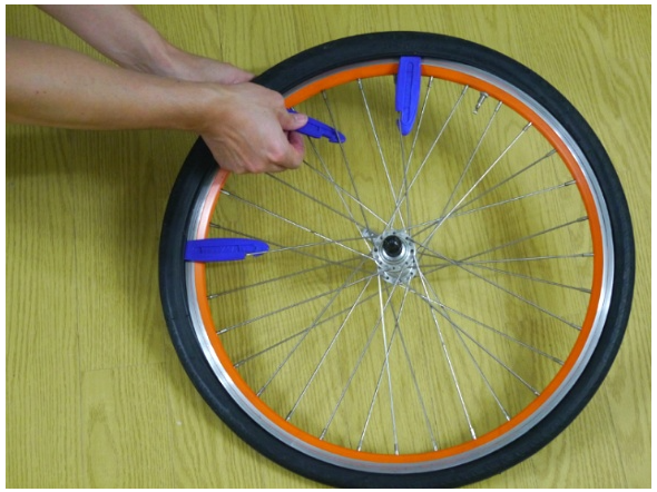 자전거 바퀴에서 타이어와 튜브를 분리하기 위해서는 분리할 바퀴 이외에 타이어 주걱만 있으면 됩니다.