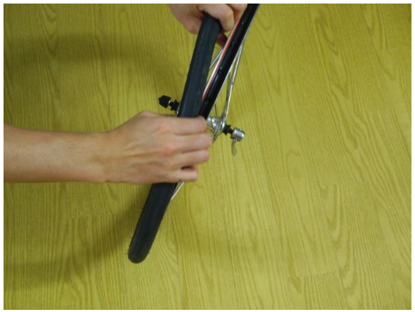 젖혀서 홈을 스포크(바퀴의 살)에 걸어준 모습입니다.