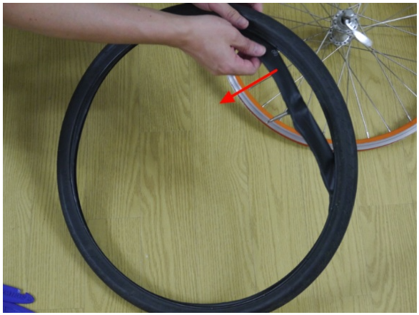 타이어와 튜브를 양 손에 나눠 잡고 화살표 방향으로 당겨주기만 하면 튜브와 타이어의 분리는 끝!
