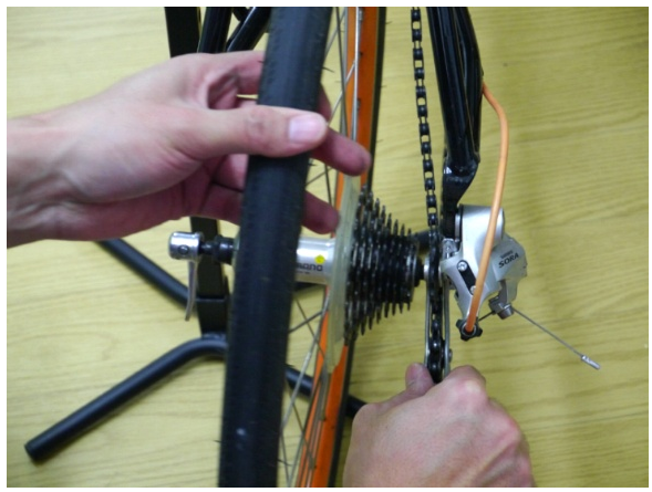 기어에 체인을 걸고 바퀴를 당겨 주는 데까지 성공했다면 거의 다 끝났습니다.