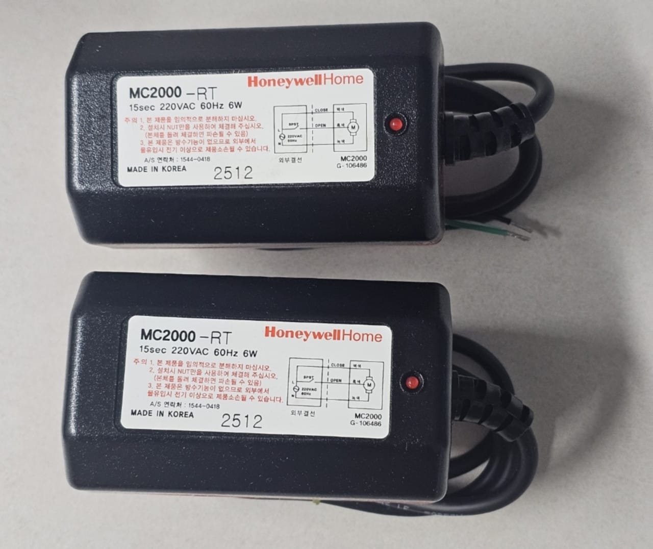 구동기 2개를 주문했습니다. 우리 집에 설치되어 있는 구동기는 하니웰 사의 MC2000이라는 모델인데 오픈마켓에서 검색하면 MC2000-RT 제품이 많이 나옵니다. 혹시 호환이 되지 않는 제품일까 싶어 후기를 찾아보니 호환에 문제가 없다고 하여 MC2000-RT 제품으로 구매했습니다. 구매 가격은 개당 35,000원.