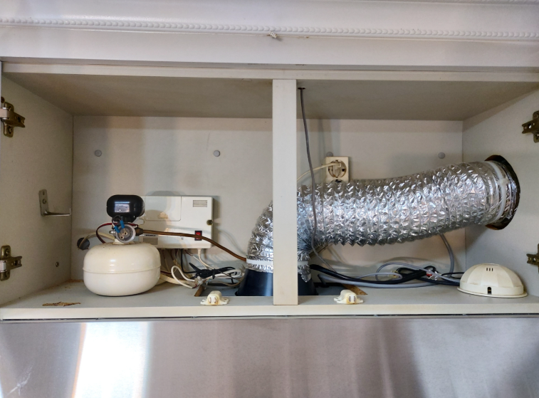 다만 그 윗부분에 있는 자동식 소화기 철거가 생각보다 까다로웠습니다. 레인지 부분에 있는 분출구 쪽을 이리저리 돌려서 분해했는데 여기서 시간이 조금 더 걸렸습니다.