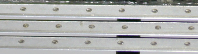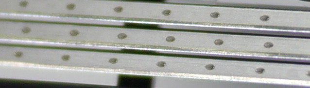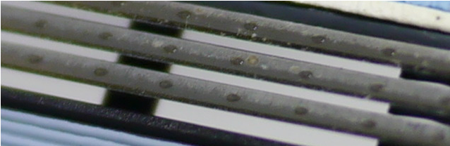 세 개의 면도날에 작은 이물질들이 붙어 있는 모습이군요.
