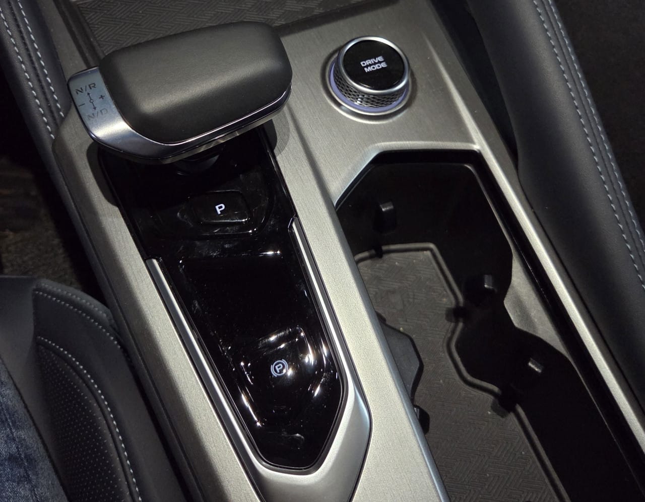먼저 변속 방법입니다. 요즘에는 기어 노브 대신 다이얼이나 컬럼 방식도 채용하던데 그랑 콜레오스는 기어 노브 방식입니다만 P>R>N>D의 기존의 기어 노브와는 약간 다른 방식입니다. P는 별도 버튼으로 아래에 있고 위나 아래로 한번 움직이면 N, 두 번 위로 밀면 R, 두 번 아래로 밀면 D로 바뀌는 식입니다.