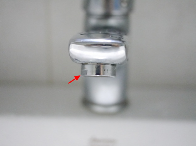 바로 이 부분인데요. 수돗물이 나오는 부분을 보니 공구로 풀 수 있도록 홈이 파져 있는 것 같습니다.