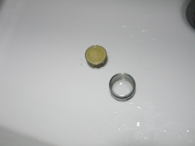 거름망의 모습입니다. 수도관을 타고 오는 이물질을 걸러 주는 부품일텐데요. 이 부품이 없이 물이 콸콸 나오는 걸 보면 거름망 역할도 하면서 물을 부드럽게 나오도록 조절해 주는 역할도 하나 봅니다.