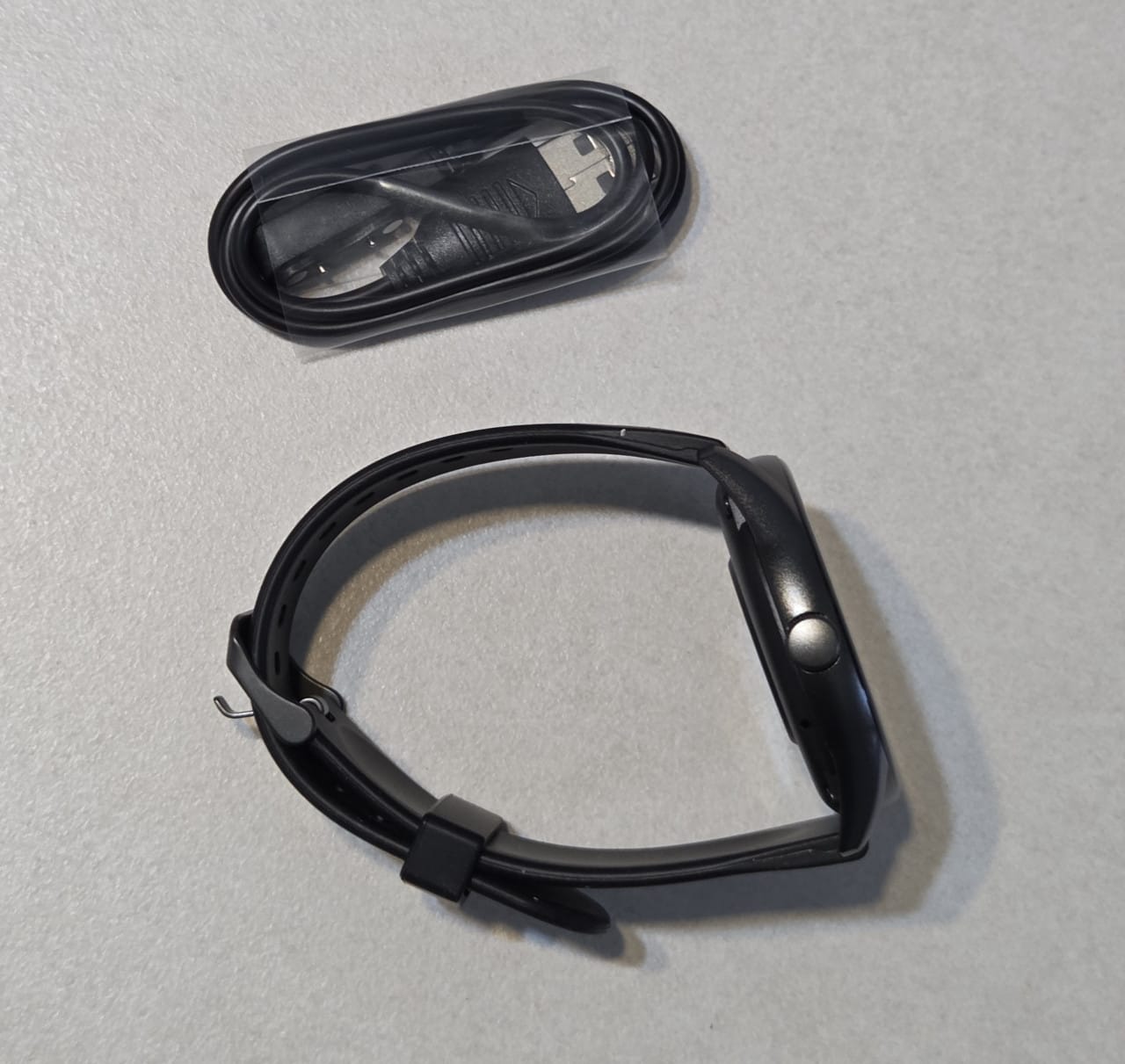 패키지의 구성입니다. 충전 케이블과 워치 본 품이 전부입니다. 종이 설명서는 생략되어 있고 패키지에 있는 QR코드를 찍어서 사용 방법을 볼 수 있도록 해 놨습니다.
