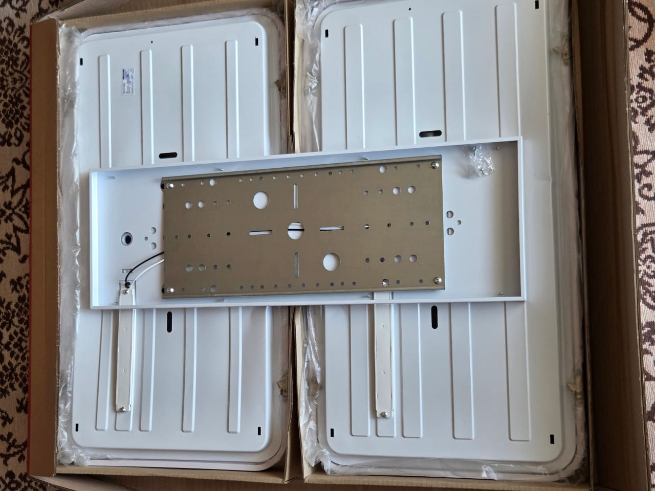 새로 구입한 120W 거실용 등을 개봉합니다. 그런데 택배를 타고 오느라 우여곡절이 많았는지 여기저기 찌그러진 모습을 발견했습니다.
