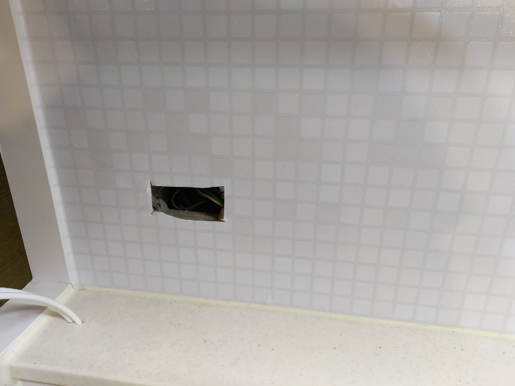 차단기를 내려도 만지기 무서운 전선입니다. 시트지 붙이는데 방해가 되지 않도록 구멍 안에 잘 구부려 넣어 줘야 합니다.