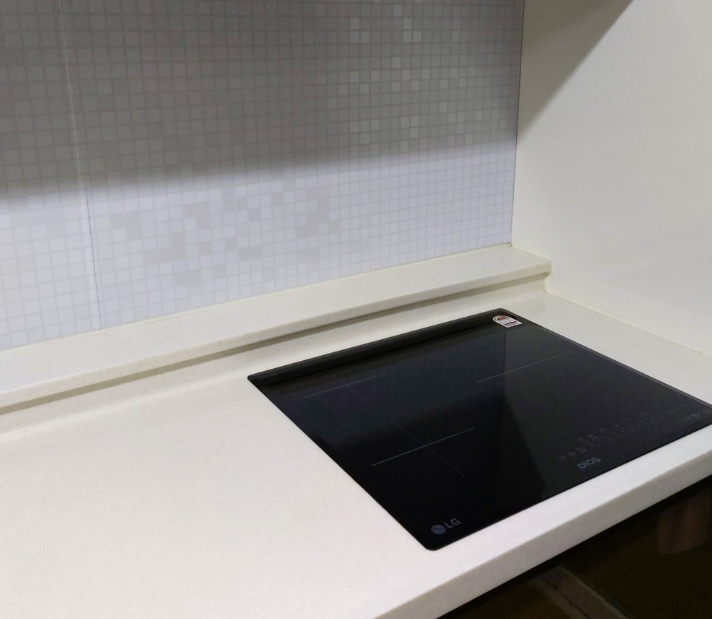 사실 가스레인지를 사용한다고 하면 이전의 은색 금속 재질 벽이 안전하고 좋습니다. 불에 약한 시트지를 선택할 수 있었던 건 가스레인지가 아닌 인덕션을 사용하기 때문입니다. 이와 같이 주방에 시트지 작업을 고려한다면 가열기구의 특징도 고려하는게 좋겠습니다.