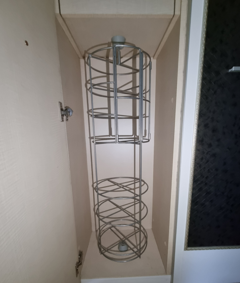 회전식으로 되어 있는데 공간도 좁고 장우산은 길어서 들어가지도 않습니다. 현관에서 멀기도 하지만 그 이유가 아니더라도 역할을 충분히 하기 어려운 구조입니다. 이 공간을 사용할 수 있도록 바꿔보기로 했습니다.