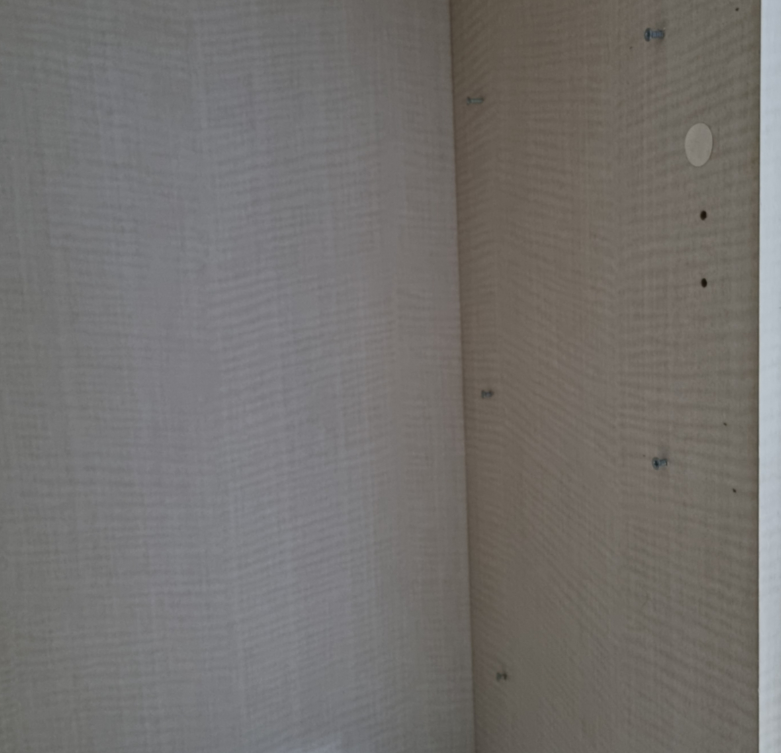 공간에서 나사를 몇 개 풀어 우산 꽂이는 제거하고 수평자와 자를 이용해 찍은 점에 이렇게 나사를 박았습니다. 고정용 비드가 있었으면 더 완벽했을 텐데 함께 주문하지 않아서 피스로 대신했습니다.