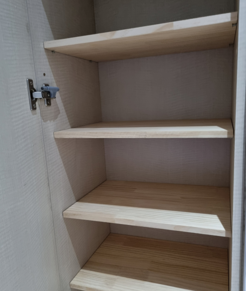 쓸모없는 공간이 손쉽게 나무 냄새가 나는 수납 공간으로 바뀌었습니다.